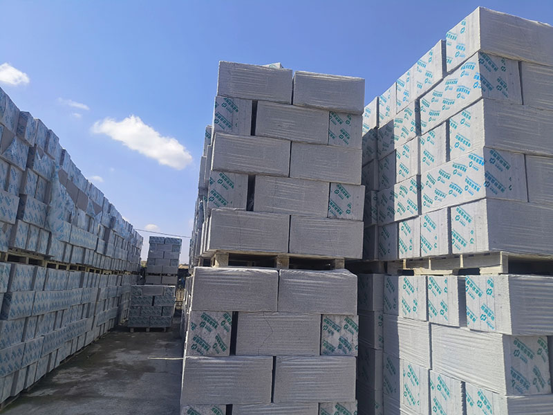 生产流程:先把水泥、水、发泡剂混合搅拌,形成带气泡的“水泥浆”;再倒进模具里静养发泡,让气泡均匀分布;切割成标准尺寸(常用600×300mm,厚度30-100mm),养护7-14天硬化后就能用。