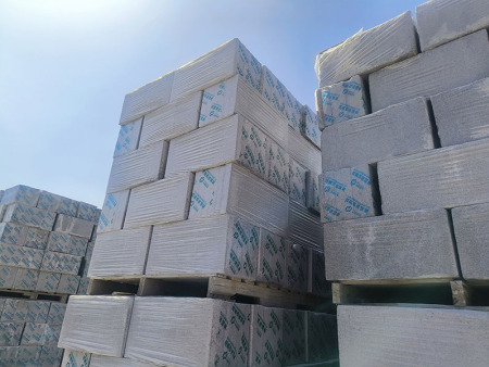 生产流程:先把水泥、水、发泡剂混合搅拌,形成带气泡的“水泥浆”;再倒进模具里静养发泡,让气泡均匀分布;切割成标准尺寸(常用600×300mm,厚度30-100mm),养护7-14天硬化后就能用。